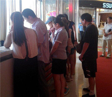 圖為顧客在服務(wù)臺(tái)排隊(duì)交款