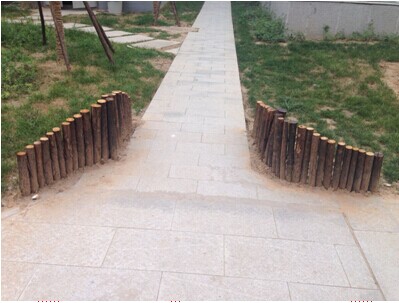 在物業(yè)部辦公樓門前有一條小石板路,這條小石板路是專供行人行走,路面較窄。但有些施工工人為了繞近道,總是推著手推車從這條小路通過,在拐彎處稍不注意就會碾壓小路旁的花草,造成小草倒塌,影響綠植的生長及美觀。