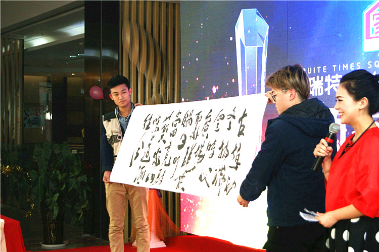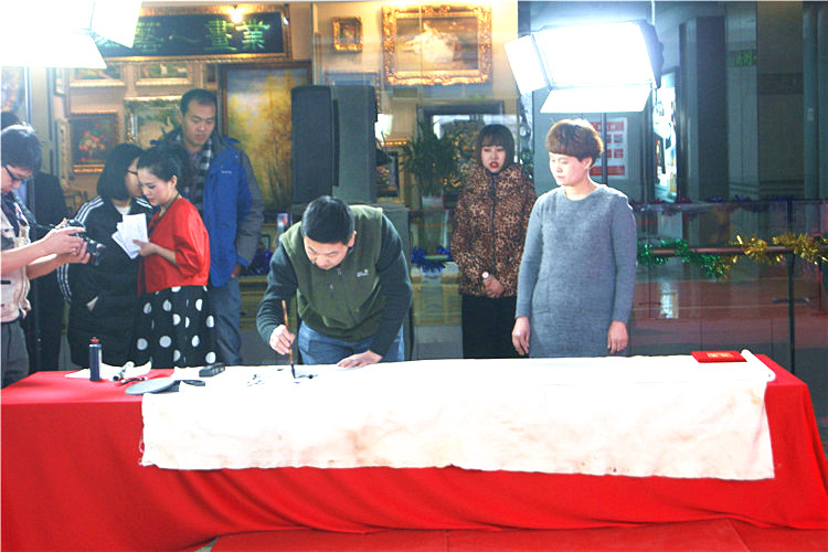 獲得三等獎的崔建軍家庭同時也獲得了“最具人氣獎”,并在現(xiàn)場潑墨,書法展示