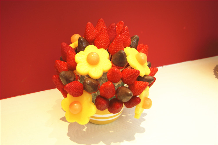 全球水果花束專家——果麗美Golimi,靈感來自美麗的鮮花組合設(shè)計,水果花采用的原料以各式水果為主,搭配濃滑巧克力制作而成。