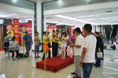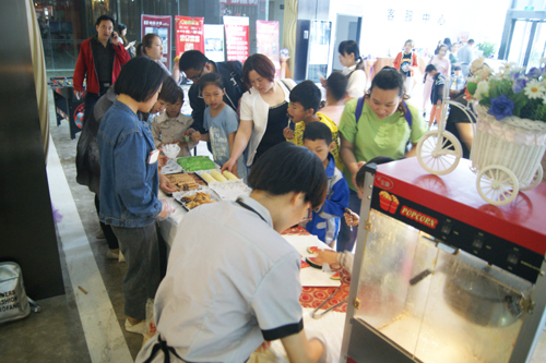 5月21日至5月22日,為回饋全市父老鄉(xiāng)親兄弟姊妹的關(guān)心與厚愛,為時(shí)兩天的全市人民游戲冷餐宴在滏瑞特時(shí)代廣場舉行。一大清早,商場內(nèi)便熱鬧非凡,隨著時(shí)間的流逝,人流在不斷的增多。孩子們一進(jìn)門就興奮地朝著一桌子的點(diǎn)心跑去:泡芙、蛋卷、餅干、不同口味的蛋糕、西瓜水果、果汁飲料讓人垂涎欲滴......之后,最吸引孩子們的要數(shù)場內(nèi)的各種游戲了。一層大廳擺著多米諾骨牌隨意供小朋友和家長玩,接著是一套游戲闖關(guān),共有五關(guān):憤怒的小鳥、體感水果忍者、進(jìn)攻vs防御、指壓板、意念對(duì)抗,整個(gè)商場成了孩子們的樂園,洋溢著歡樂的氣氛。