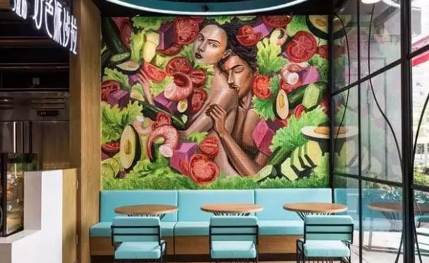 靠窗的墻壁上,是一副恩愛(ài)情侶圖,比較明顯的點(diǎn)名“色”這一重要主旨。現(xiàn)代主題餐廳效果圖中,不發(fā)時(shí)尚元素,當(dāng)然也需要一些更為大膽的創(chuàng)新設(shè)計(jì),才能讓人流連。
