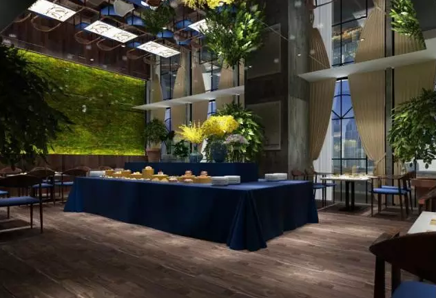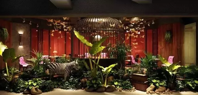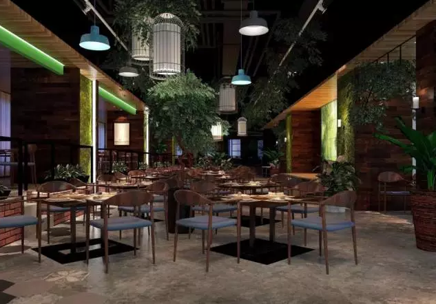 現(xiàn)代主題餐廳效果圖中,滲入了許多時(shí)尚元素,在考慮到現(xiàn)代人喜愛(ài)簡(jiǎn)潔這一要點(diǎn),餐廳的布局更顯簡(jiǎn)潔。這時(shí)一家以極進(jìn)自然的餐廳,墻面用綠色藤蔓做裝飾,吊頂也掛上樹(shù)枝裝飾,悠閑且浪漫。