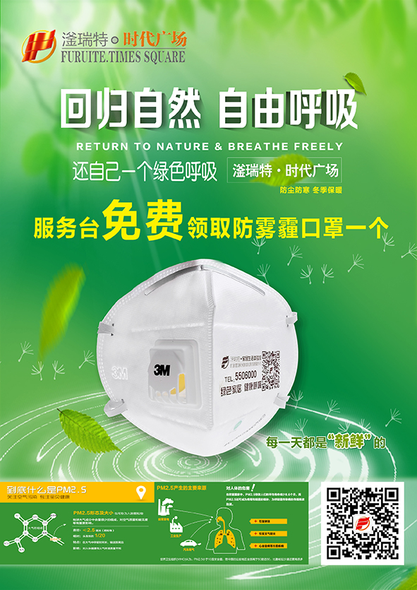即日起,凡進(jìn)商場(chǎng)的顧客即可到服務(wù)臺(tái)領(lǐng)取防霧霾口罩一副,隔離污染空氣,我們時(shí)刻牽掛著老百姓的健康。
