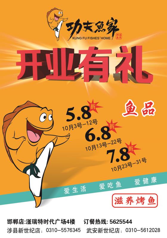 熱烈祝賀【功夫魚家】入駐滏瑞特時代廣場四層!
