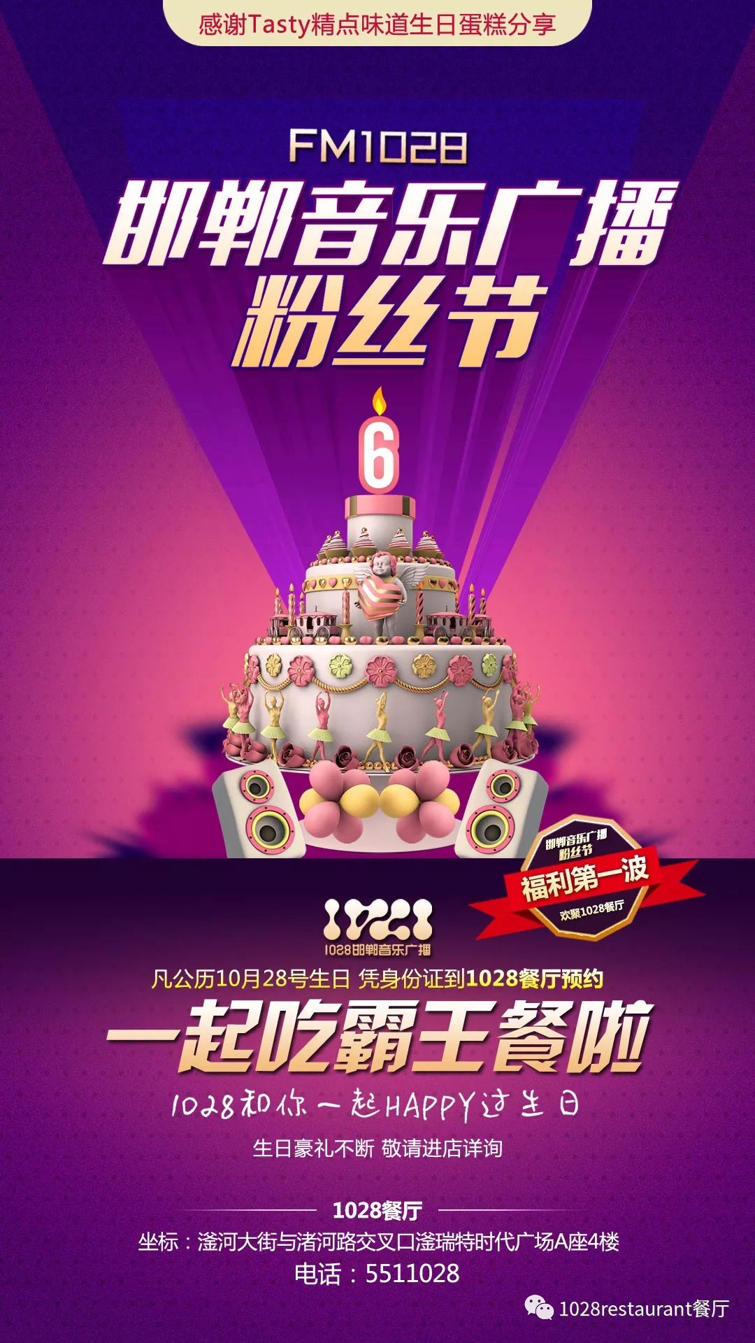 1028餐廳攜手精點(diǎn)味道蛋糕 請(qǐng)您來(lái)吃霸王餐!即日起征集前十名壽星(以身份證公歷10月28日為準(zhǔn)),可來(lái)餐廳核實(shí)并預(yù)定名額,10月28號(hào)晚,我們?yōu)槟鷾?zhǔn)備了豐盛的晚餐。并且當(dāng)晚壽星家屬來(lái)店內(nèi)就餐餐桌可享受會(huì)員價(jià)再贈(zèng)送價(jià)值500元親情卡一張。