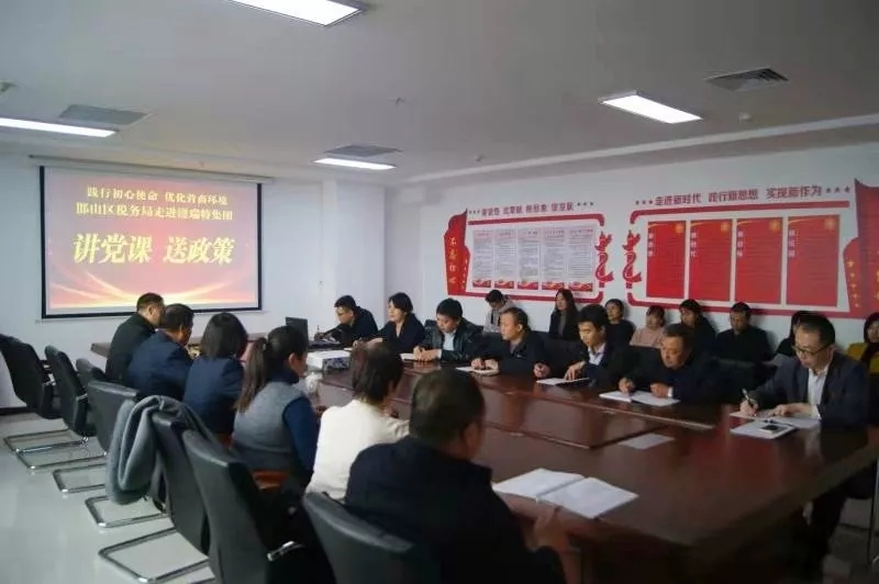 11月20日,邯山區(qū)稅務(wù)局、滏東街道辦滏一社區(qū)走進(jìn)全省非公黨建示范點(diǎn)——河北滏瑞特集團(tuán),聯(lián)合開展“不忘初心,牢記使命”主題教育活動(dòng),宣講黨章稅法,踐行初心使命,服務(wù)企業(yè)發(fā)展。
