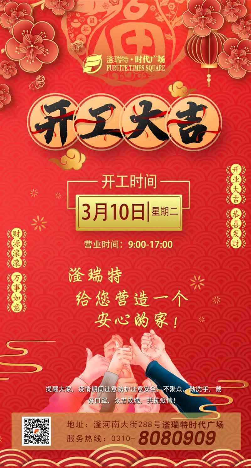 開(kāi)工大吉!裝修好時(shí)節(jié),開(kāi)工不停歇!滏瑞特時(shí)代廣場(chǎng)給您營(yíng)造一個(gè)安心的家!